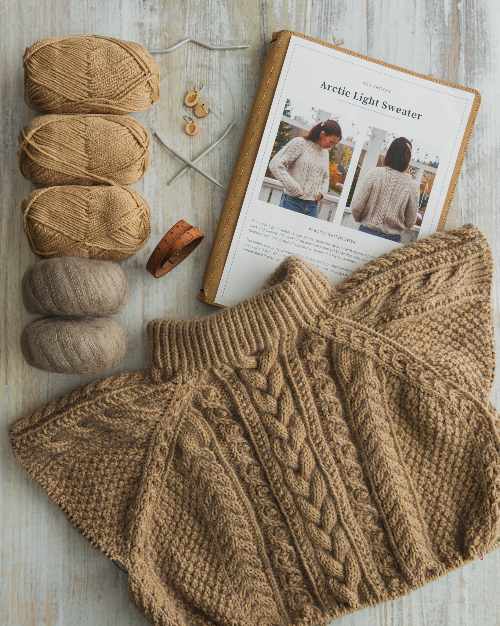 🧶 Jeg strikker med Sandnes Garn Petiteknit Double Sunday farge Camel 2542 kombinert med Knitting for Olive Soft Silk Mohair farge Linen. 🧶